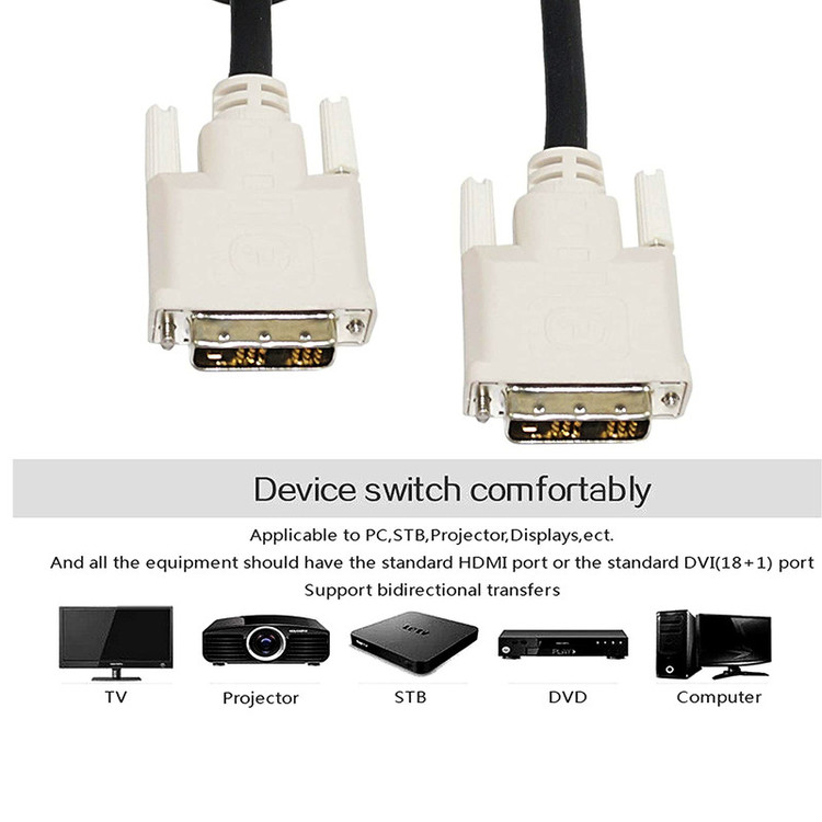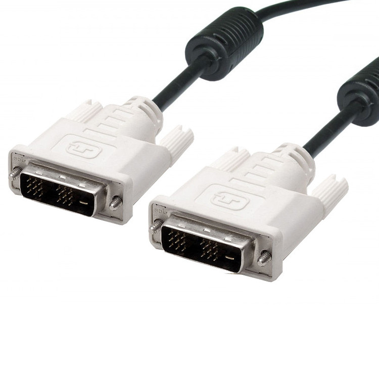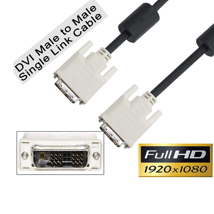 کابل DVI استانداردی برای اتصال یک منبع ویدئویی به یک دستگاه پخشکننده مانند مانیتور یا پروژکتور است. معمولا پورت خروجی DVI یا Digital Visual Interface روی لپ تاپ ها دیده نمی شود اما خیلی از کامپیوترهای رومیزی و تمام مانیتورها به این پورت مجهز هستند. کابل 1.5 متری DVI با روکش PVC تولید شده و می توان از آن برای انتقال سیگنال های تصویری دیجیتال در صفحه نمایش ها یا ویدئو پروژکتورهایی که این درگاه را دارند استفاده کرد. کابل 1.5 متری DVI تک کاناله مشابه تصاویر (18+1 پین ) از سیگنال های دیجیتال FULL HD پشتیبانی می کند.کابل DVI فقط برای انتقال تصویر است و صدا را انتقال نمی دهد.
