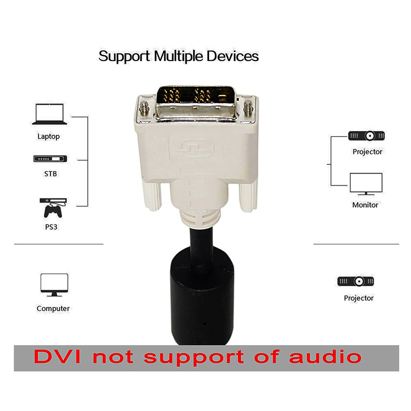 کابل DVI استانداردی برای اتصال یک منبع ویدئویی به یک دستگاه پخشکننده مانند مانیتور یا پروژکتور است. معمولا پورت خروجی DVI یا Digital Visual Interface روی لپ تاپ ها دیده نمی شود اما خیلی از کامپیوترهای رومیزی و تمام مانیتورها به این پورت مجهز هستند. کابل 1.5 متری DVI با روکش PVC تولید شده و می توان از آن برای انتقال سیگنال های تصویری دیجیتال در صفحه نمایش ها یا ویدئو پروژکتورهایی که این درگاه را دارند استفاده کرد. کابل 1.5 متری DVI تک کاناله مشابه تصاویر (18+1 پین ) از سیگنال های دیجیتال FULL HD پشتیبانی می کند.کابل DVI فقط برای انتقال تصویر است و صدا را انتقال نمی دهد.