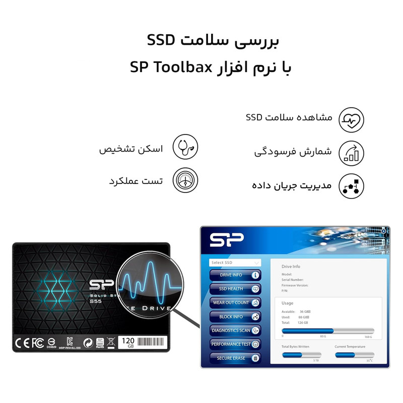 حافظه اس اس دی اینترنال سیلیکون پاور مدل Slim S55 ظرفیت 120 گیگابایت