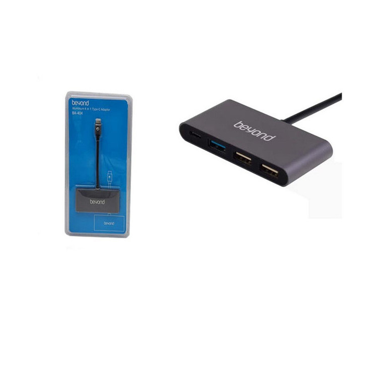 هاب آداپتور بیاند Aluminum 4 in 1 Type-C Adaptor BA-404 برای اتصال فلش مموری، کیبورد یا ماوس به تبلت، کامپیوتر و هر دستگاهی که مجهز به درگاه USB است، به کار میرود. با داشتن این هاب آداپتور شما در همه حال درگاه مناسب برای انتقال اطلاعاتتان را در دسترس خواهید داشت. بدنۀ این محصول بسیار باکیفیت از آلمینیوم ساخته شده و مقاوم در برابر ضربه و خط و خش میباشد. نحوه اتصال این هاب آداپتوردار بیاند به صورت Plug and Play است و میتوانید به وسیلۀ آن، فلش مموری، کیبورد، موبایل یا ماوس خود را به لپتاپ، تبلت یا کامپیوترتان متصل کنید.