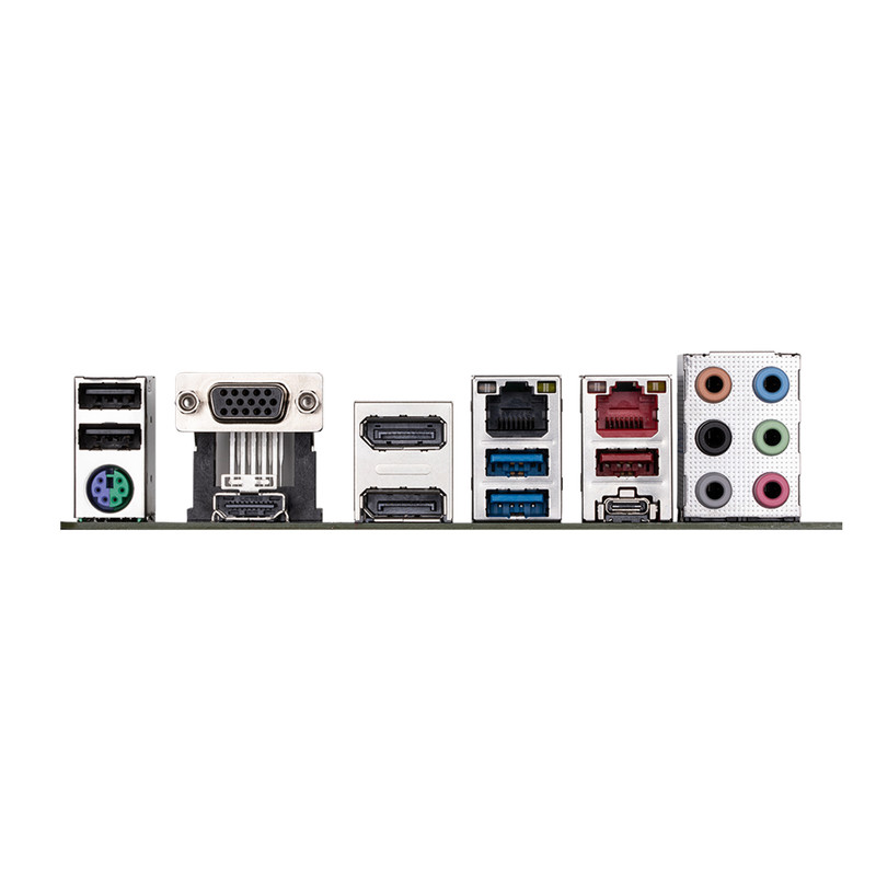 توضیحات تکمیلی پورتها : یک عدد پورت USB Type-C در پنل پشتی با پشتیبانی از USB 3.2 Gen 2 / یک عدد پورت USB 3.2 Gen 2 Type-A (قرمز) در پنل پشتی / چهار عدد پورت USB 3.2 Gen 1 (دو عدد در پنل پشتی، دو عدد از طریق هدر داخلی USB در دسترس) / دو عدد پورت USB 2.0/1.1 در پنل پشتی