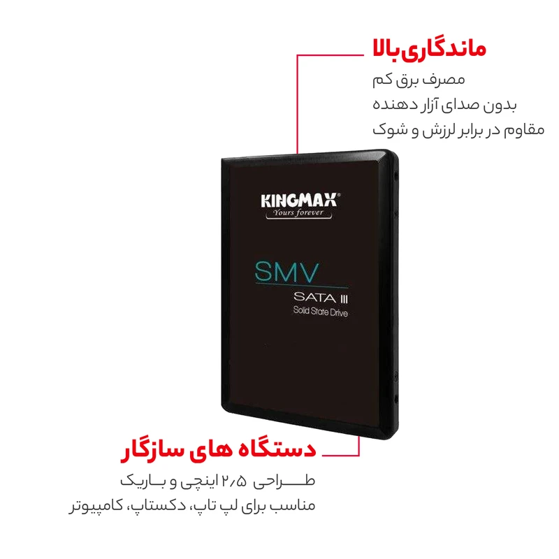 3D NAND , NCQ , TRIM , پشتیبانی از S.M.A.R.T , مقاوم در برابر شوک